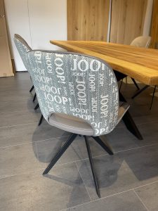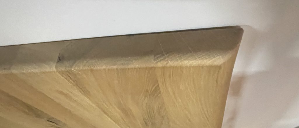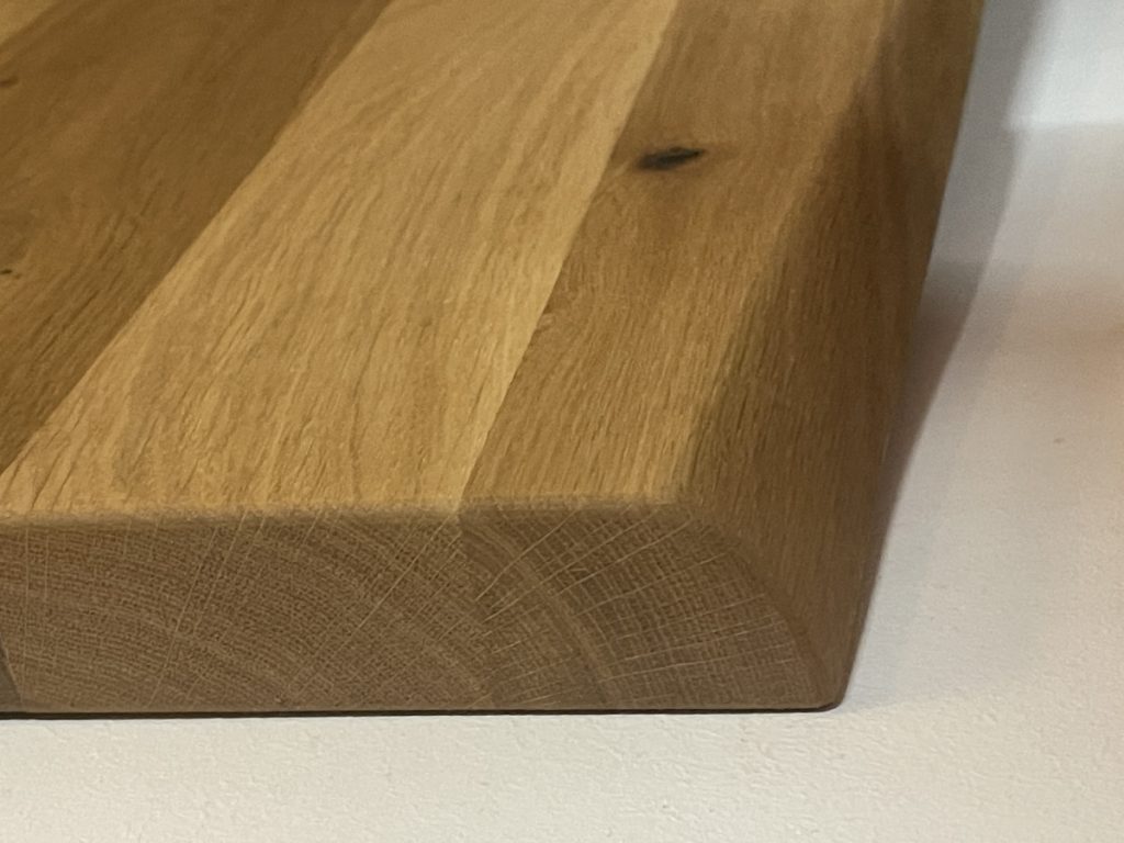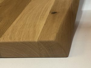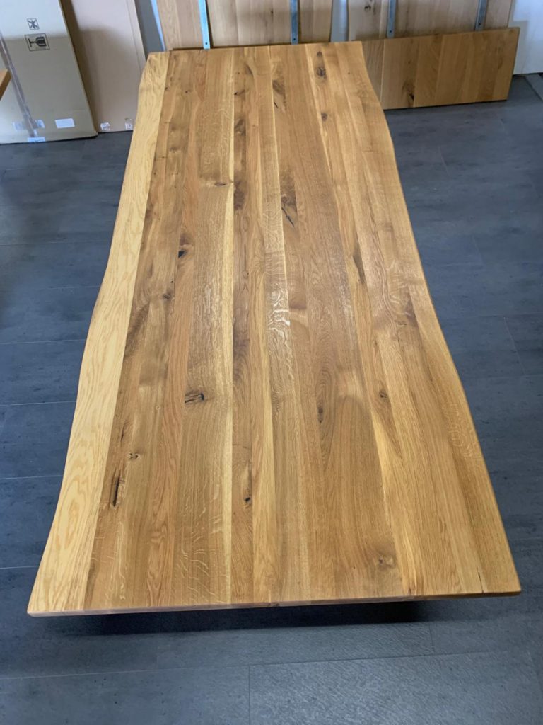 Tischplatte in massiver Wildeiche, dicke Schweizer Kante,