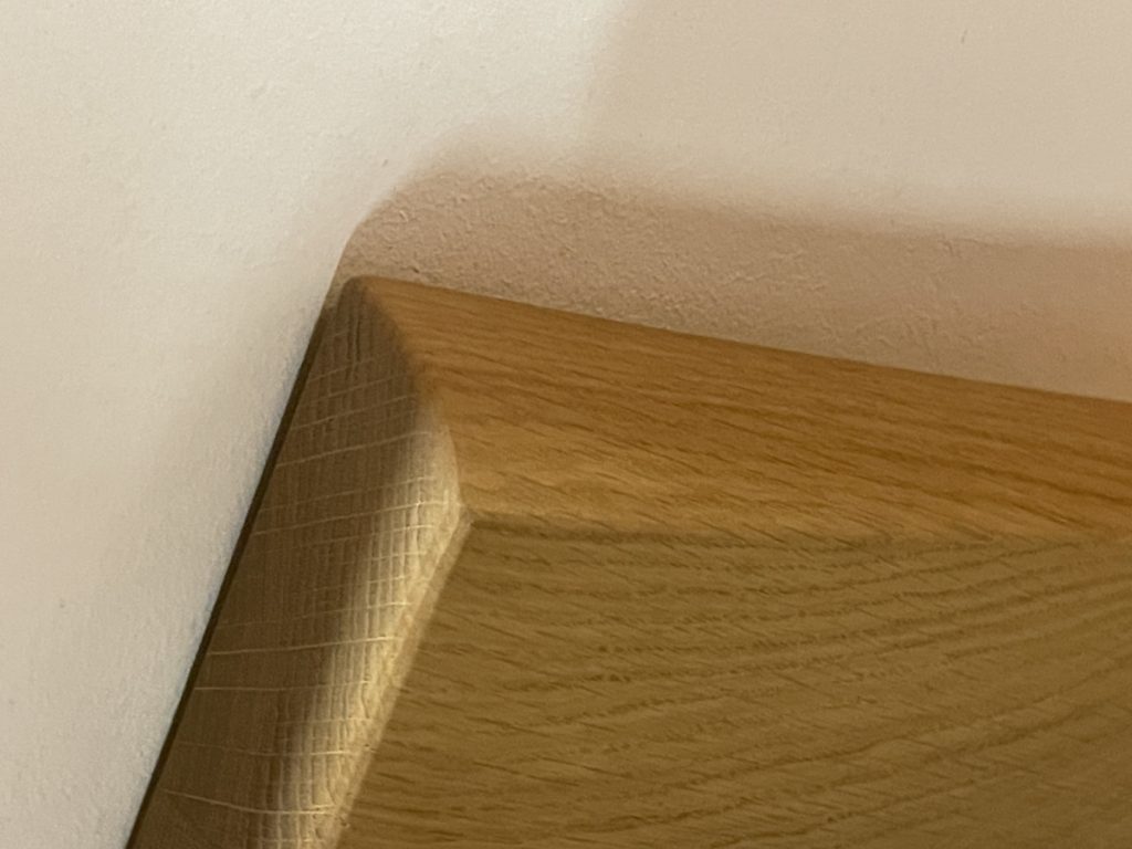 Tischplatte ohne Fuß in massiver Wildeiche, spezielle Kante,