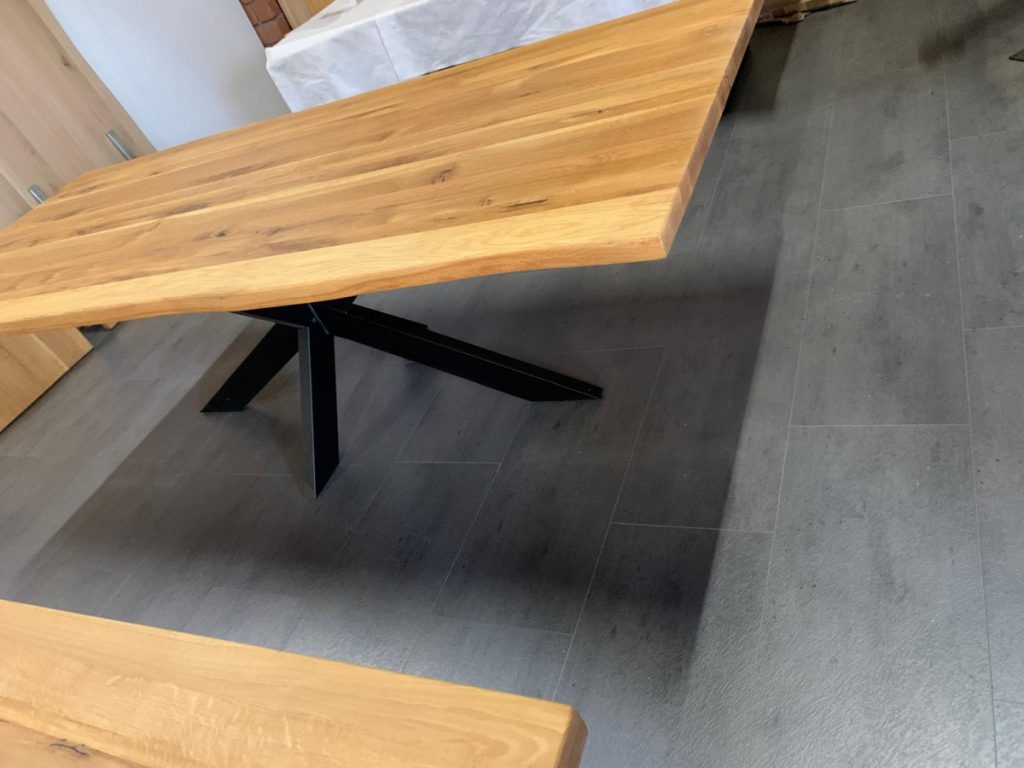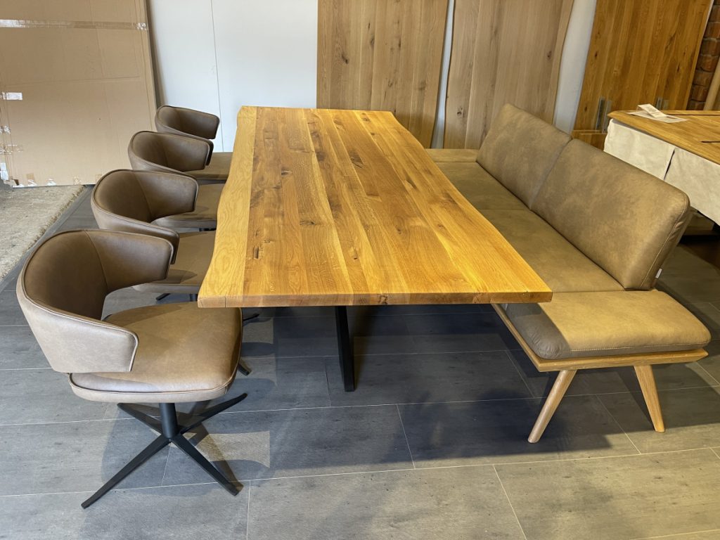 Esstisch in massiver Wildeiche, Baumkante,