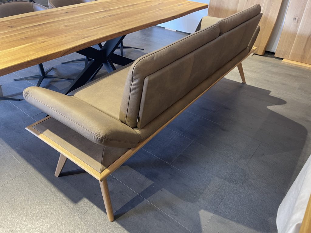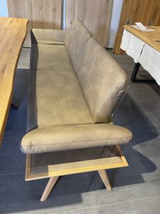 Lederbank auf Gestell in Eiche, klappbare Armlehnen, L: 226 cm,